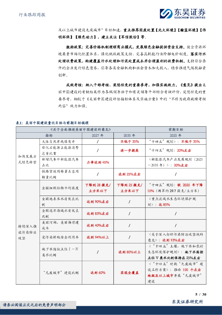 东吴证券:环保行业跟踪周报:中共中央、国务院关于全面推进美丽中国建设的意见,“无废城市”目标加速,全面推荐优质环保资产.pdf