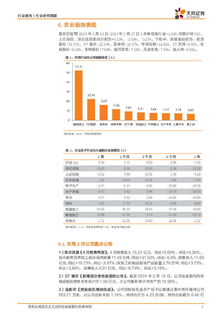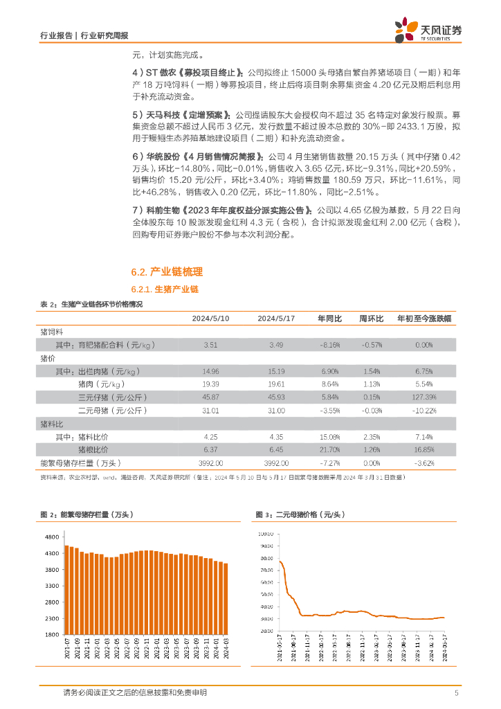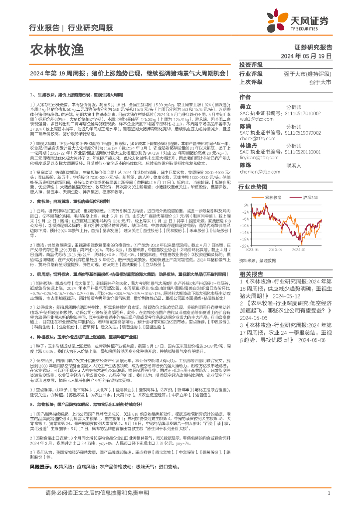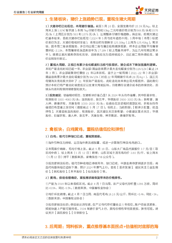 天风证券:农林牧渔行业2024年第19周周报:猪价上涨趋势已现,继续强调猪鸡景气大周期机会!.pdf