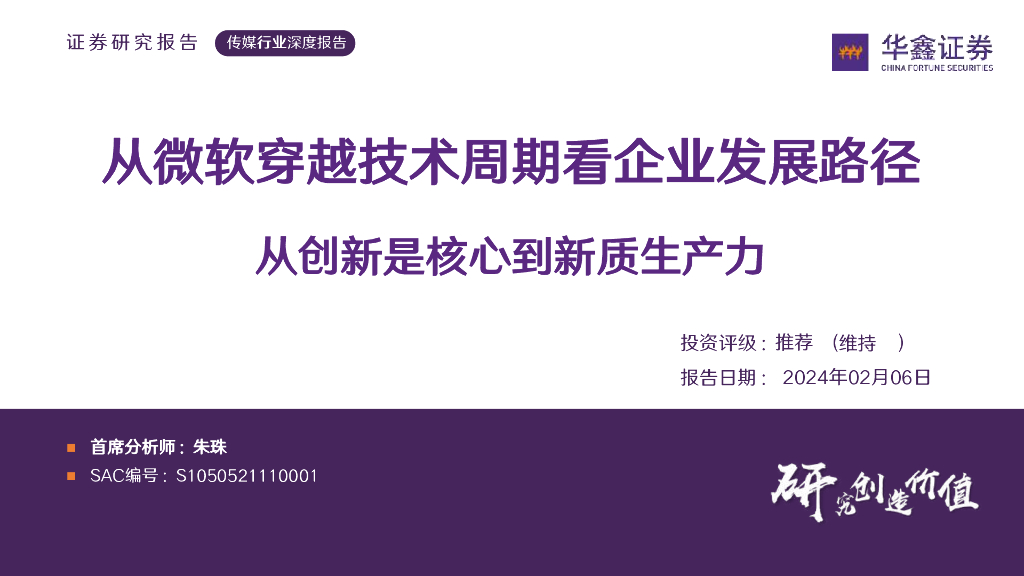 华鑫证券:传媒行业深度报告:从微软穿越技术周期看企业发展路径 从创新是核心到新质生产力.pdf