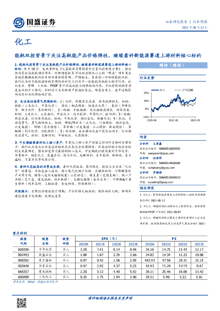 国盛证券:化工行业周报:能耗双控背景下关注高耗能产品价格弹性,继续看好新能源赛道上游材料核心标的.pdf