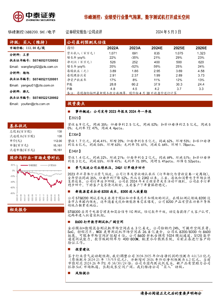 中泰证券:华峰测控:业绩受行业景气拖累,数字测试机打开成长空间.pdf