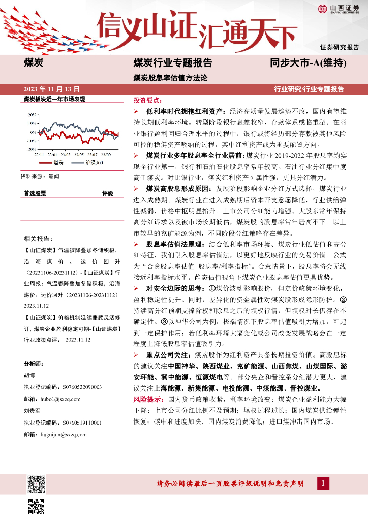 山西证券:煤炭行业专题报告:煤炭股息率估值方法论.pdf