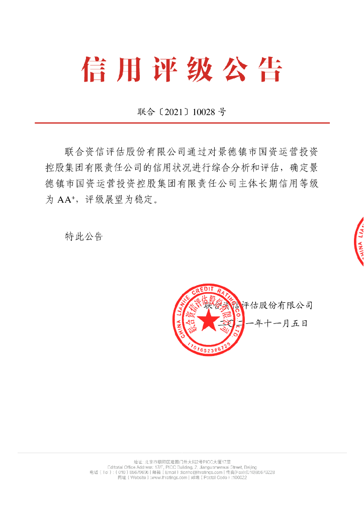 联合资信:景德镇市国资运营投资控股集团有限责任公司主体信用评级报告及跟踪评级安排.pdf