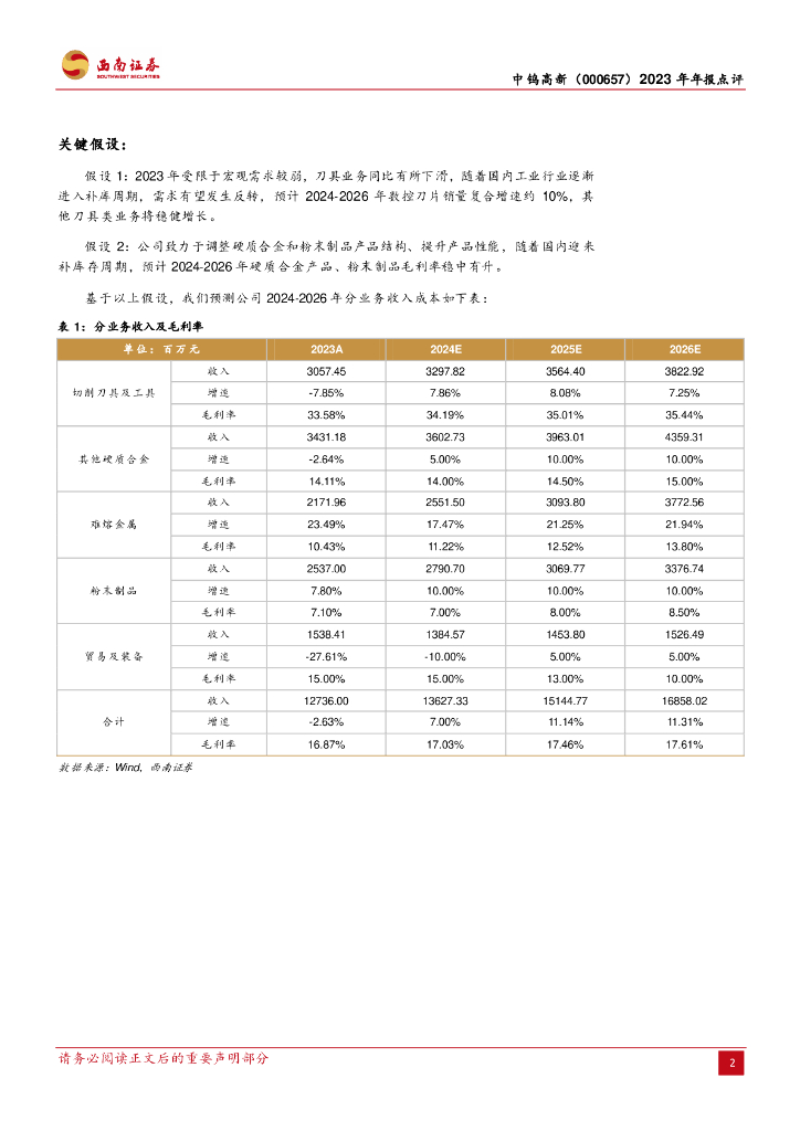 西南证券:中钨高新(000657)-2023年年报点评:需求弱势,业绩承压.pdf