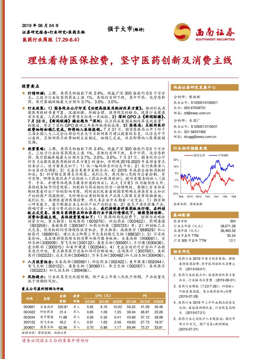 西南证券:医药行业周报:理性看待医保控费,坚守医药创新及消费主线.pdf