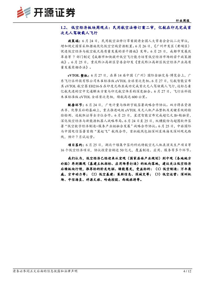 开源证券:电力设备行业周报:低空经济行业周报(第二十二期):民用航空法修订案二审,亿航在印尼完成首次无人驾驶载人飞行.pdf