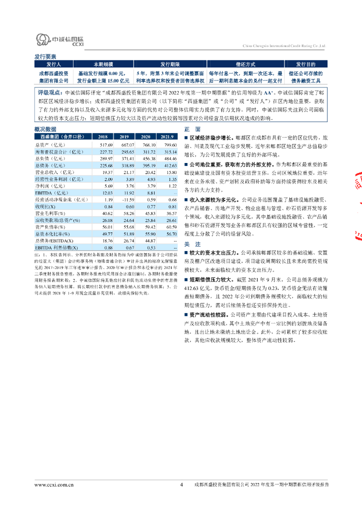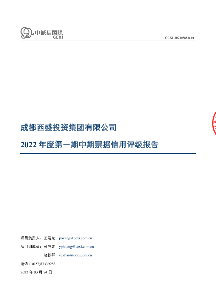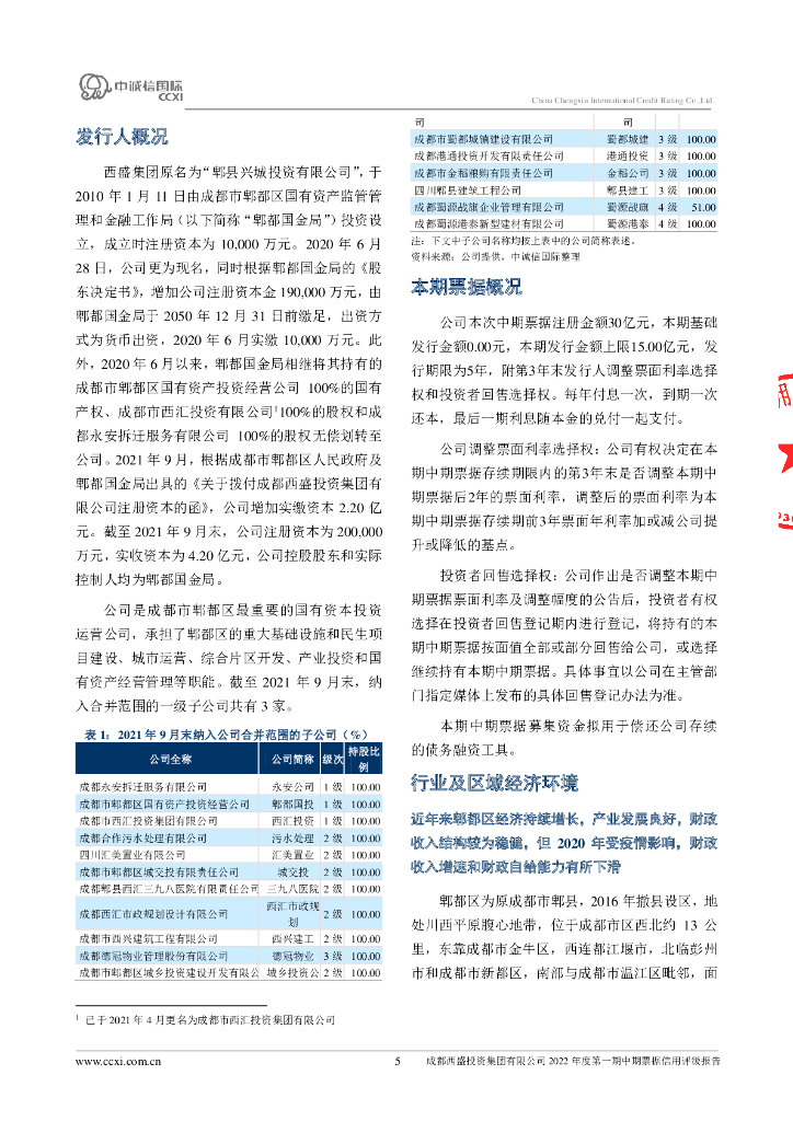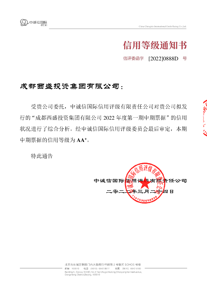中诚信:成都西盛投资集团有限公司2022年度第一期中期票据债项评级报告.pdf