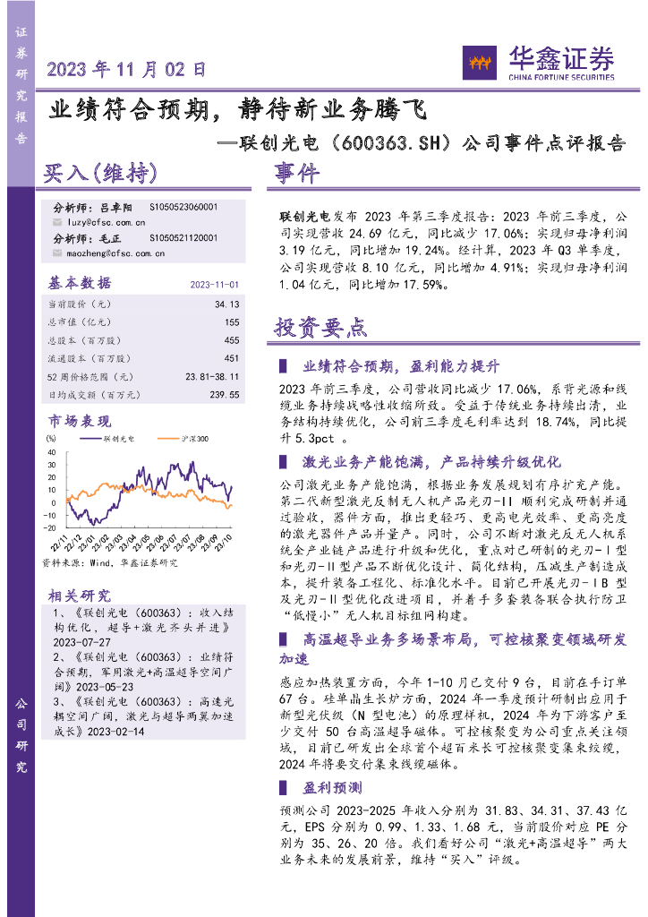 华鑫证券:联创光电(600363)-公司事件点评报告:业绩符合预期,静待新业务腾飞.pdf