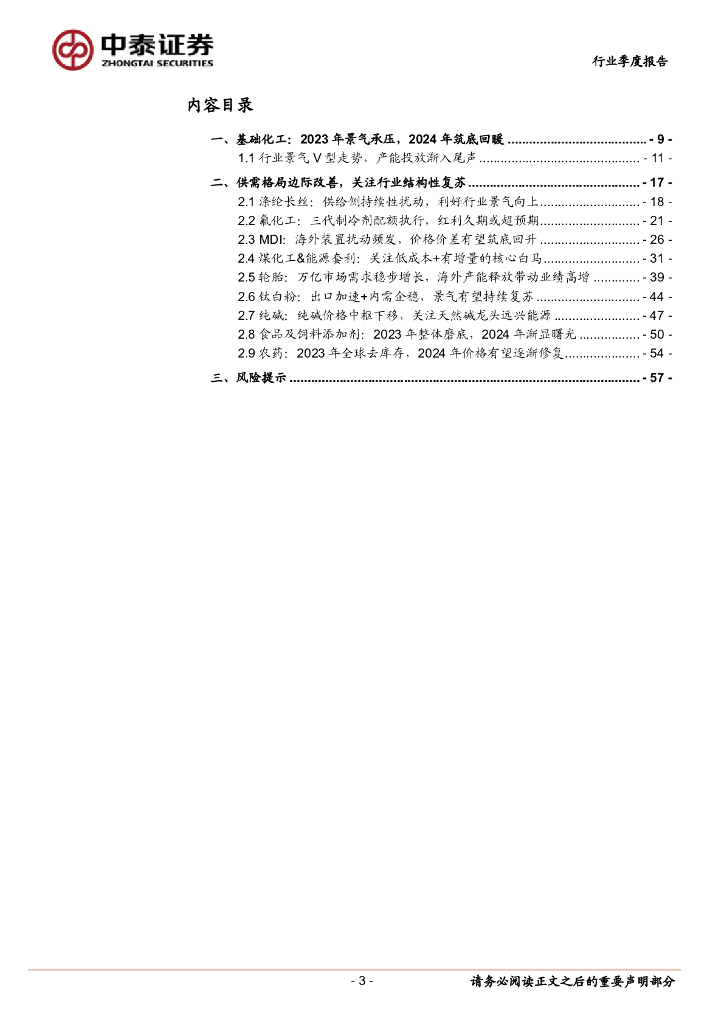 中泰证券:基础化工行业2023年报与2024年一季报总结:高产能释放趋近尾声,细分子行业景气回暖.pdf