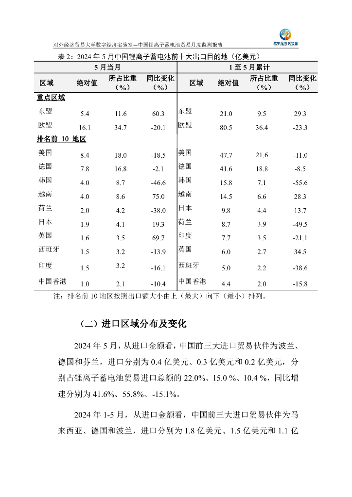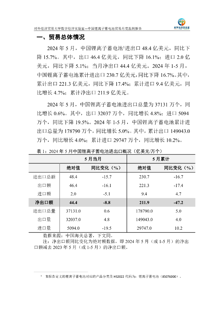 对外经济贸易大学:中国锂离子蓄电池贸易月度监测报告(2024年1-5月).pdf