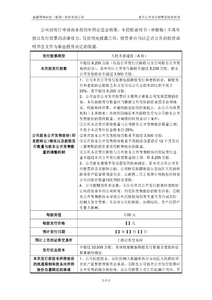 新疆雪峰科技(集团)股份有限公司上交所主板IPO上市招股说明书.pdf