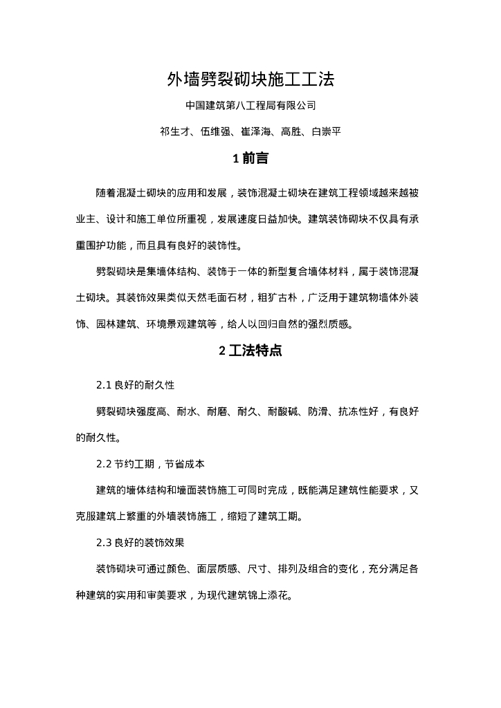 QHGF-2022060 外墙劈裂砌块施工工法.doc