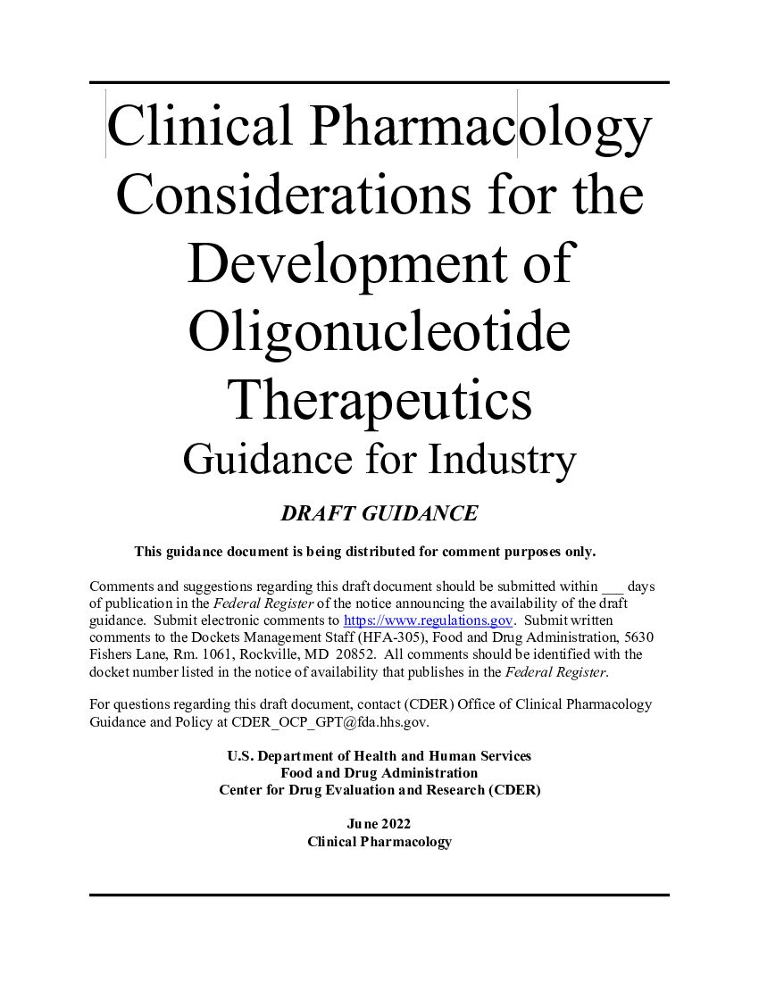 FDA:寡核苷酸疗法开发的临床药理学注意事项(英文版).pdf