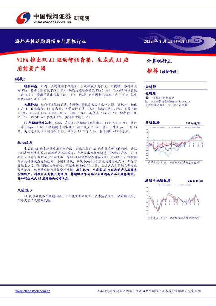 中国银河:海外科技追踪周报:VIFA推出双AI驱动智能音箱,生成式AI应用前景广阔.pdf