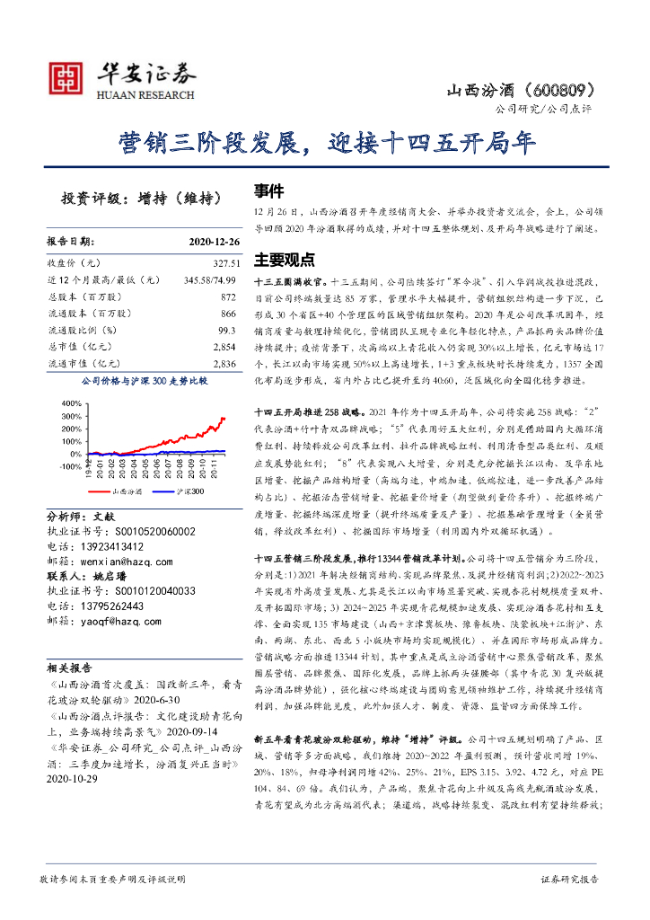 华安证券:山西汾酒(600809)-营销三阶段发展,迎接十四五开局年.pdf