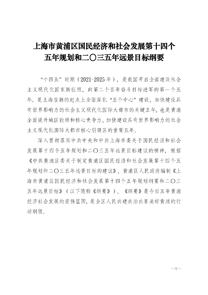 上海市黄浦区国民经济和社会发展第十四个五年规划和2035年远景目标纲要.pdf