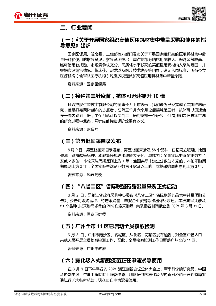 粤开证券:医药行业周报:第五批国采目录发布,雾化吸入式新冠疫苗正申请紧急使用.pdf