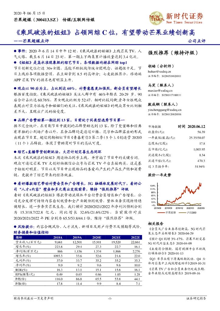 新时代证券:芒果超媒点评:《乘风破浪的姐姐》占领网综C位,有望带动芒果业绩创新高.pdf
