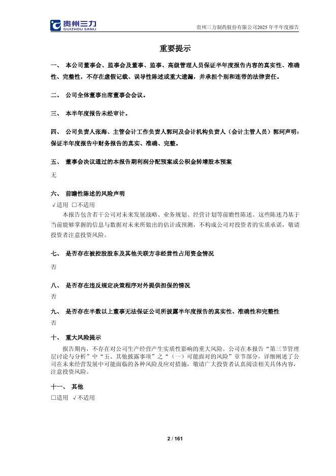 603439-贵州三力:贵州三力制药股份有限公司2025年半年度报告.pdf