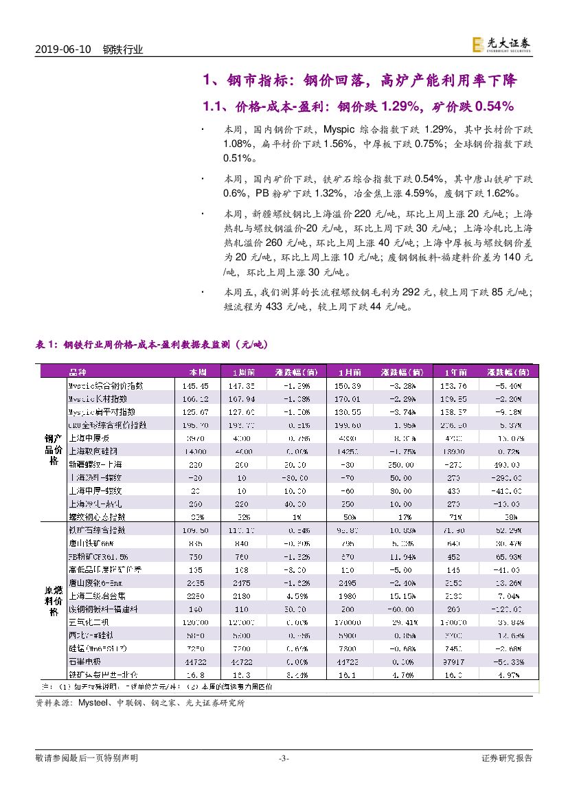 光大证券:钢铁行业周报:模拟长流程螺纹毛利降至年内最低水平.pdf