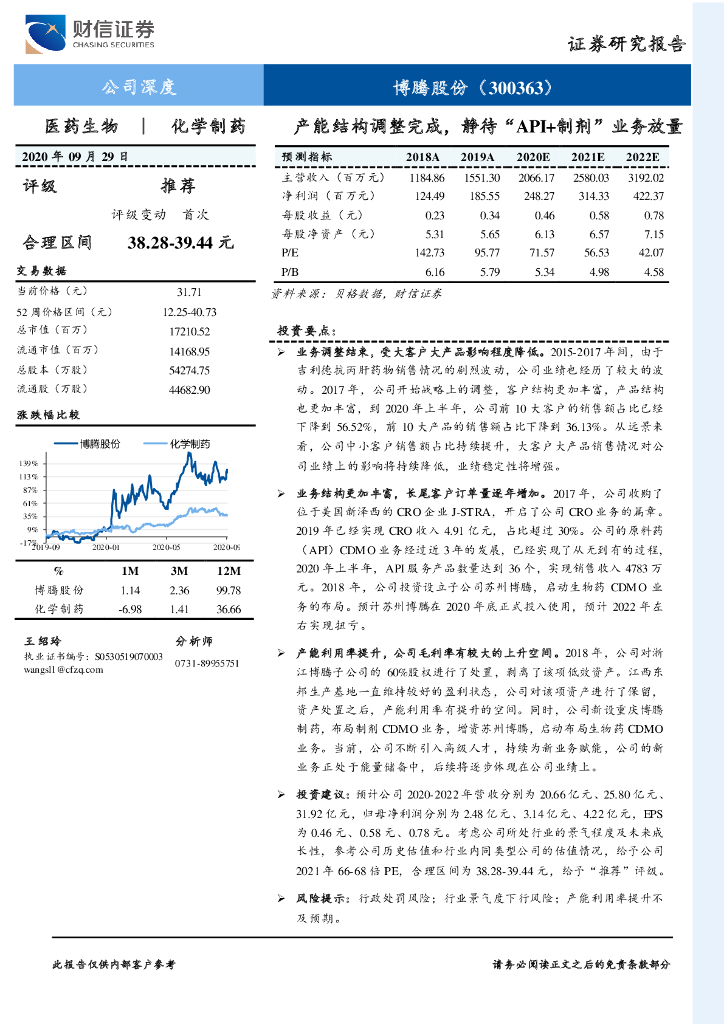 财信证券:博腾股份(300363)-产能结构调整完成,静待“API+制剂”业务放量.pdf