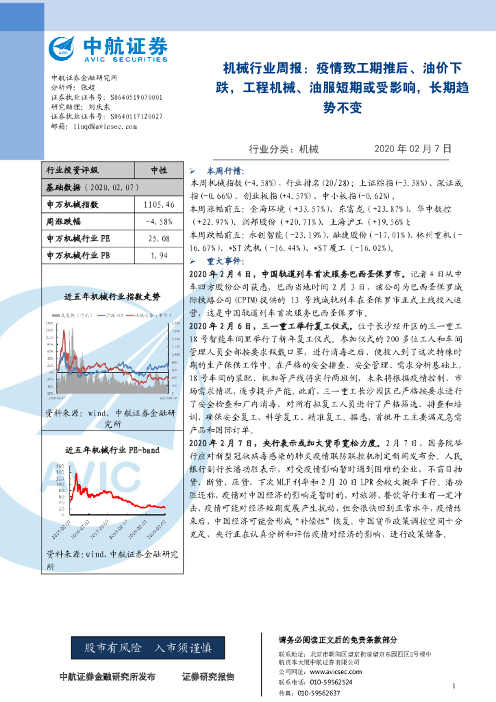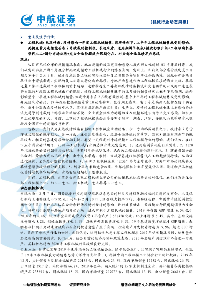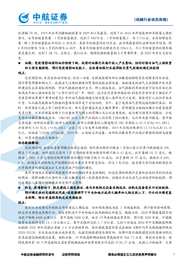 中航证券:机械行业周报: 疫情致工期推后、油价下跌,工程机械、油服短期或受影响,长期趋势不变.pdf