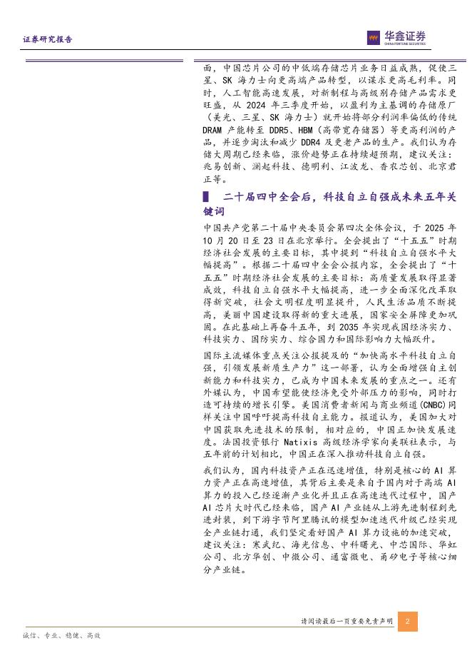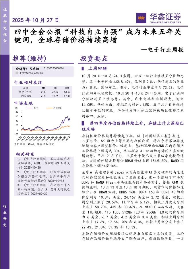 华鑫证券:电子行业周报:四中全会公报“科技自立自强”成为未来五年关键词,全球存储价格持续高增.pdf