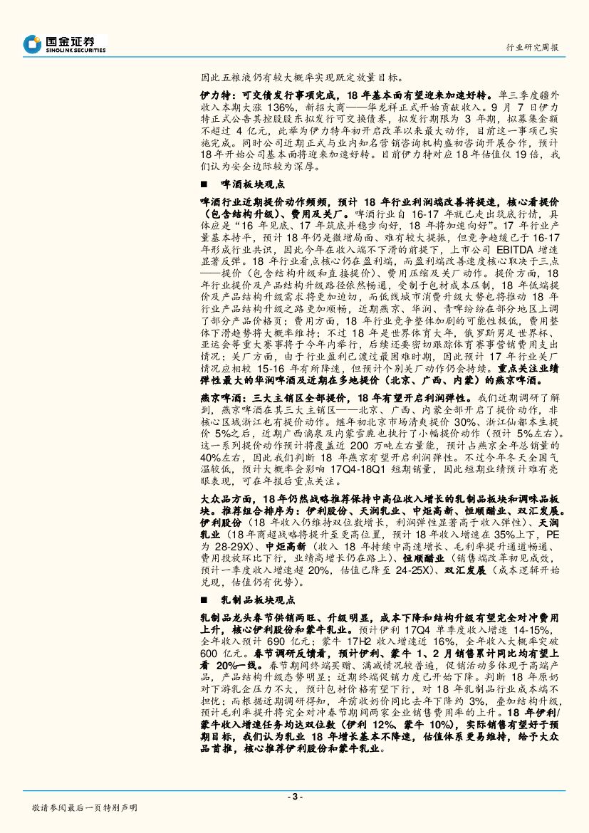 国金证券:食品饮料行业研究周报:业绩担忧困扰白酒板块,动销向好及原奶成本下降或推动乳制品板块业绩超预期.pdf
