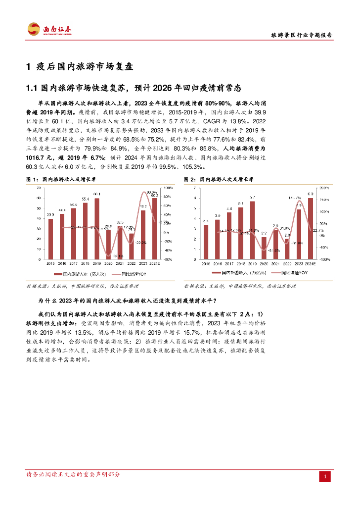 西南证券:旅游景区行业专题报告:一文讲清楚国内旅游市场复苏的持续性.pdf