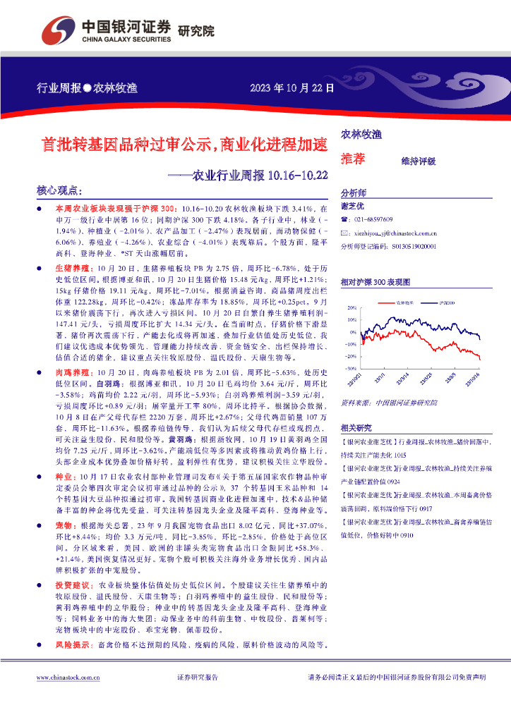 中国银河:农业行业周报:首批转基因品种过审公示,商业化进程加速.pdf