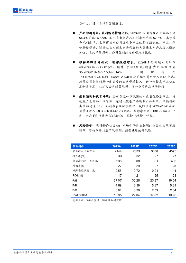 国海证券:百亚股份(003006)-2024年半年报点评:Q2收入利润超预期,看好产品结构持续优化下的长期成长.pdf