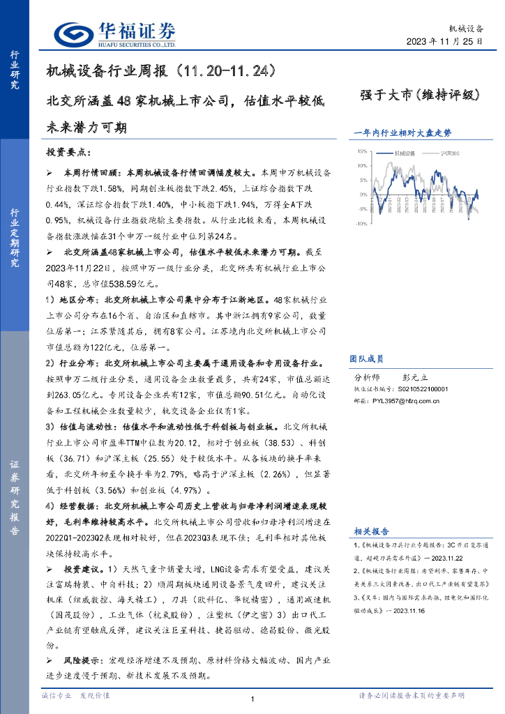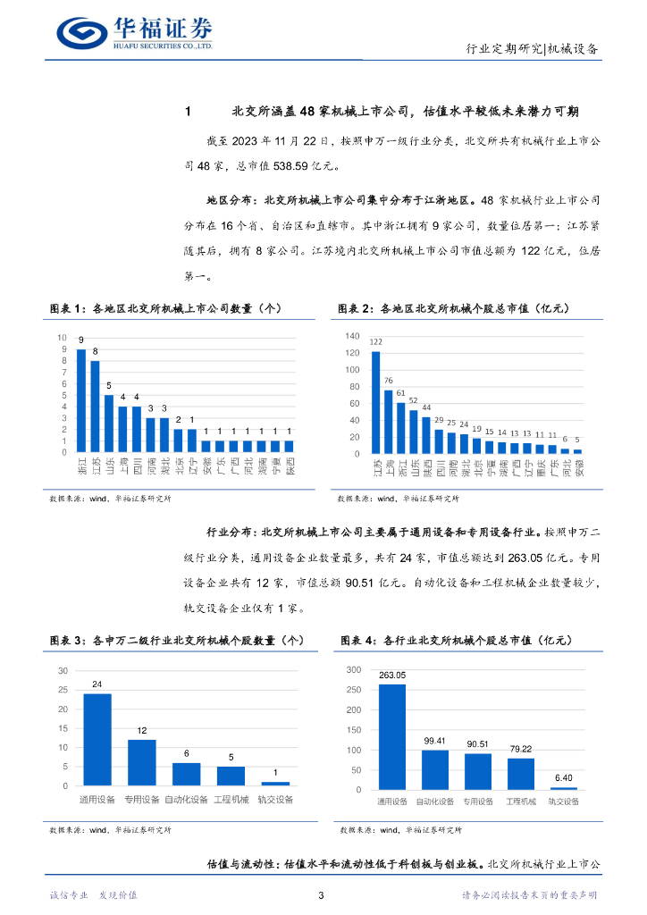 华福证券:机械设备行业周报:北交所涵盖48家机械上市公司,估值水平较低未来潜力可期.pdf