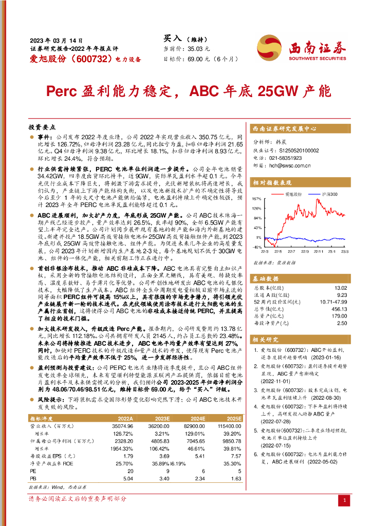 西南证券:爱旭股份(600732)-Perc盈利能力稳定,ABC年底25GW产能.pdf