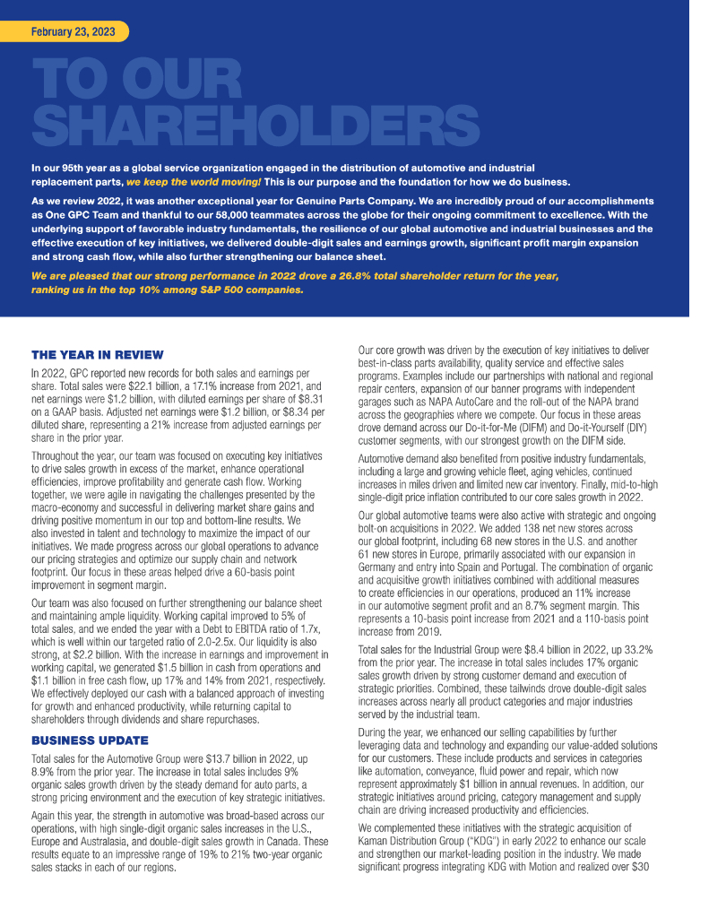 Genuine Parts(GPC)2022财年年度报告(英文版).pdf