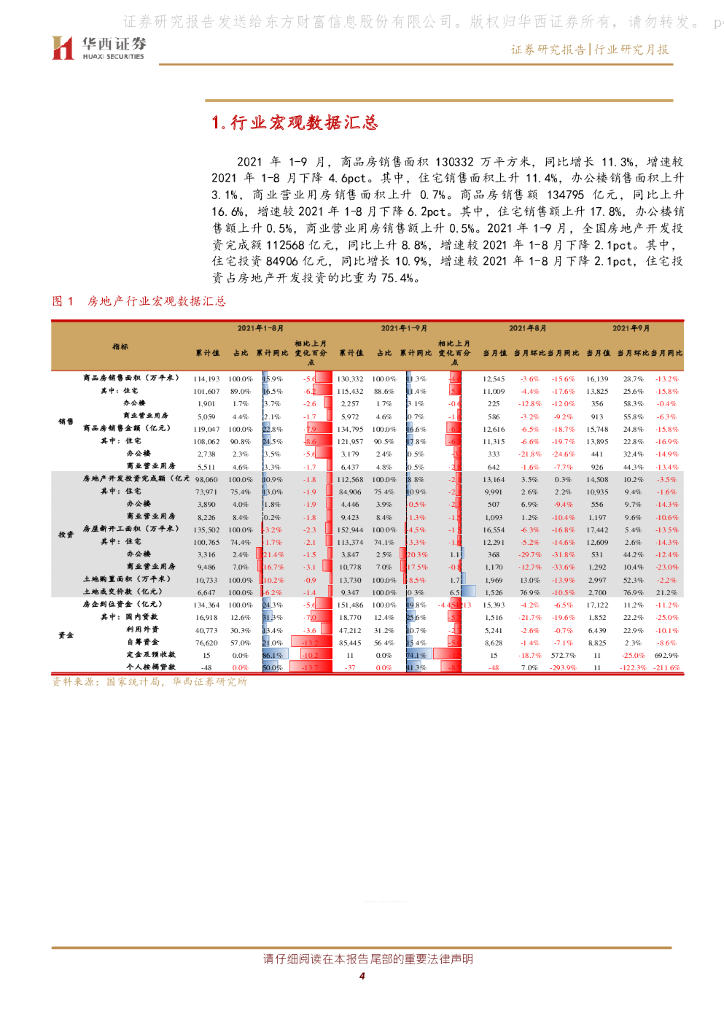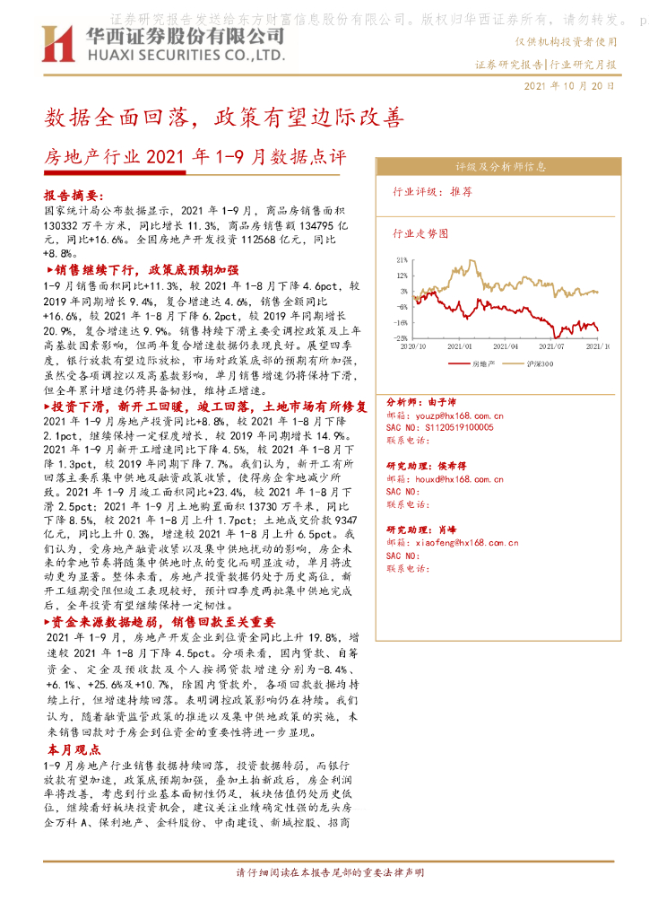 华西证券:房地产行业2021年1-9月数据点评:数据全面回落,政策有望边际改善.pdf