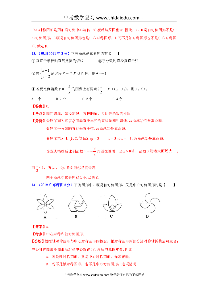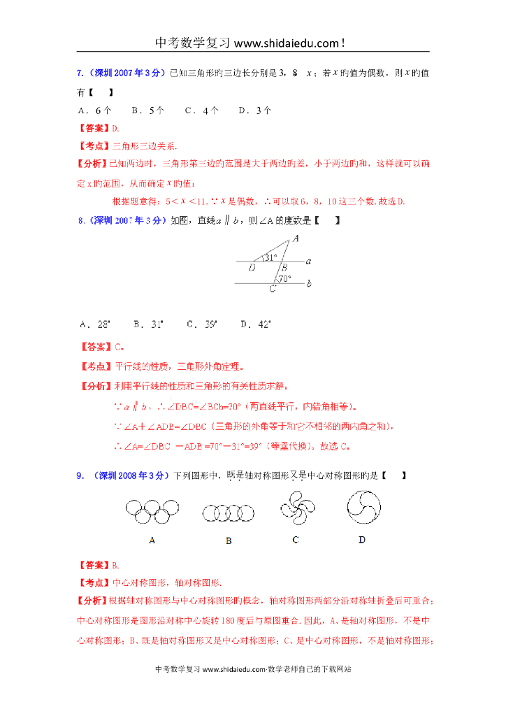 广东深圳-中考数学试题分类解析专题8:平面几何基础.doc