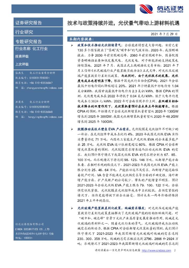 信达证券:化工行业专题研究报告:技术与政策并进,光伏景气带动上游材料机遇.pdf