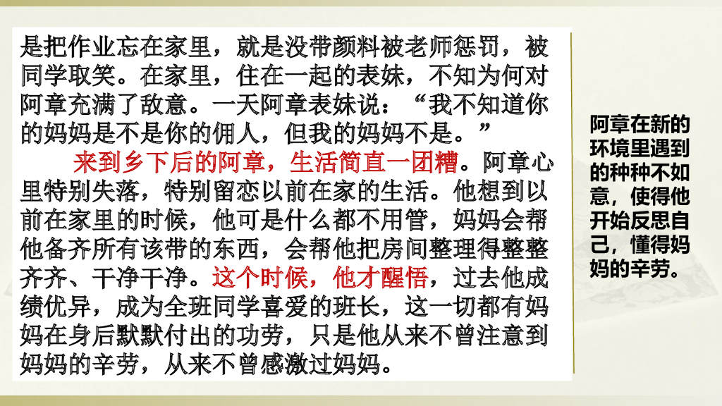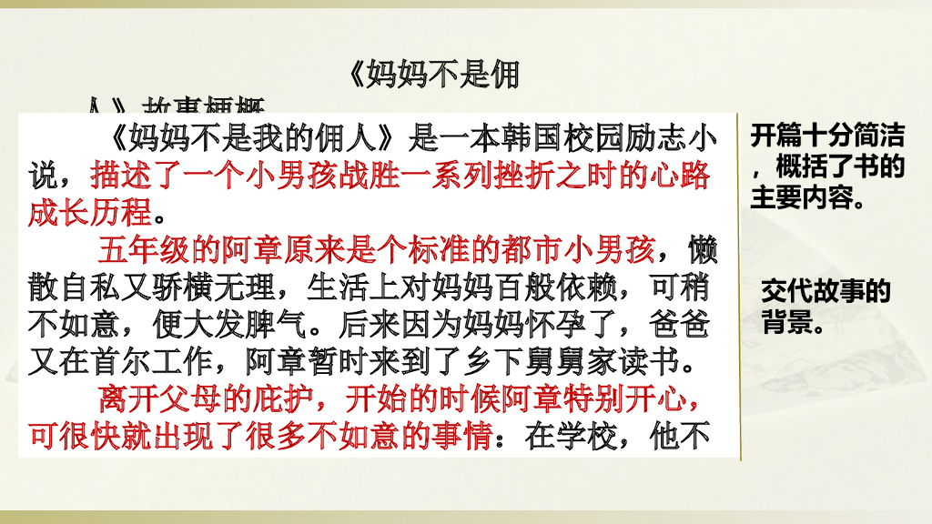 部编版六年级语文下册范文1:《妈妈不是佣人》故事梗概.ppt