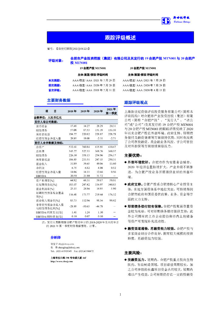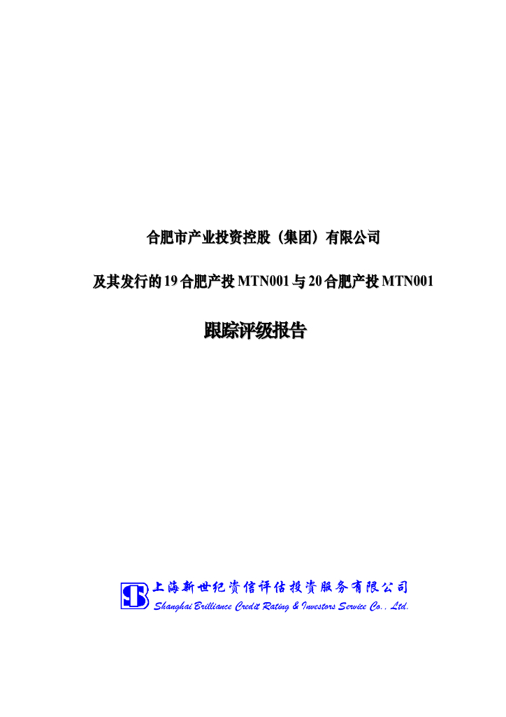 新世纪:合肥市产业投资控股(集团)有限公司及其发行的19合肥产投MTN001与20合肥产投MTN001跟踪评级报告.pdf