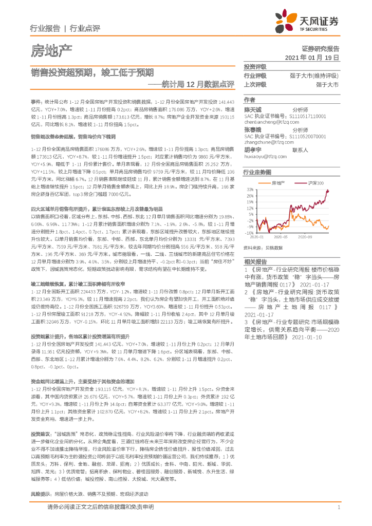 天风证券:房地产:统计局12月数据点评-销售投资超预期,竣工低于预期.pdf