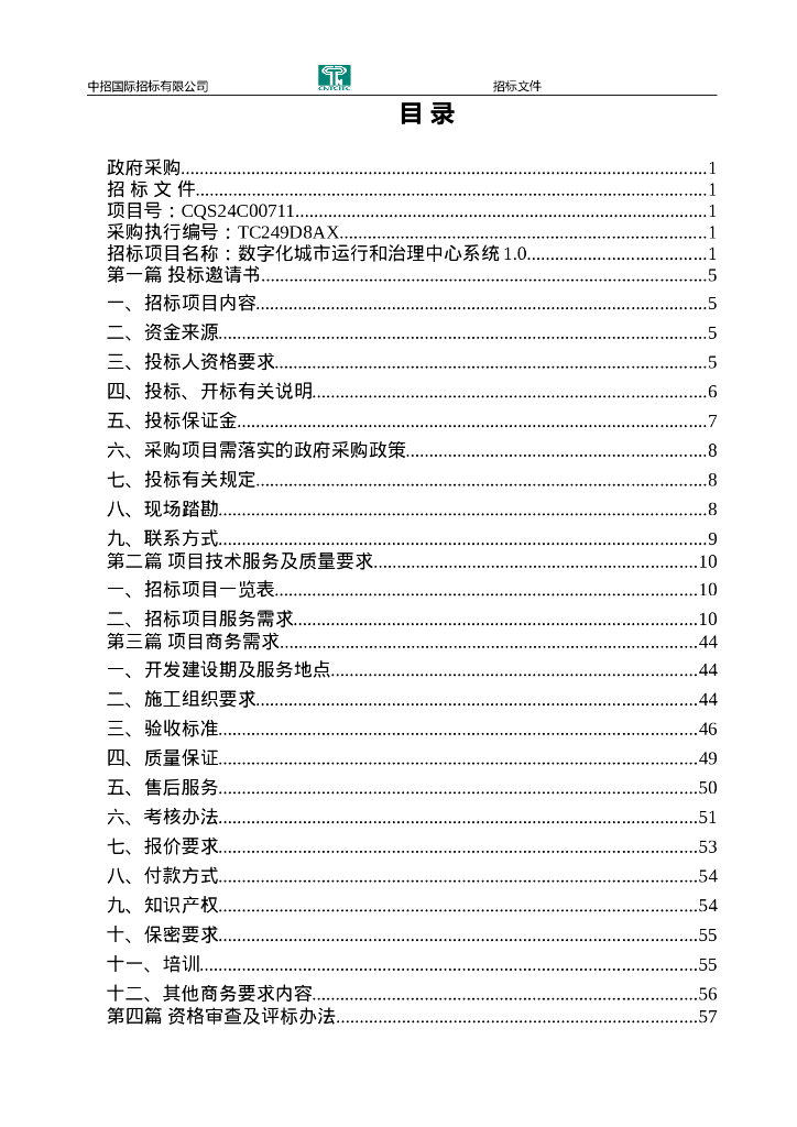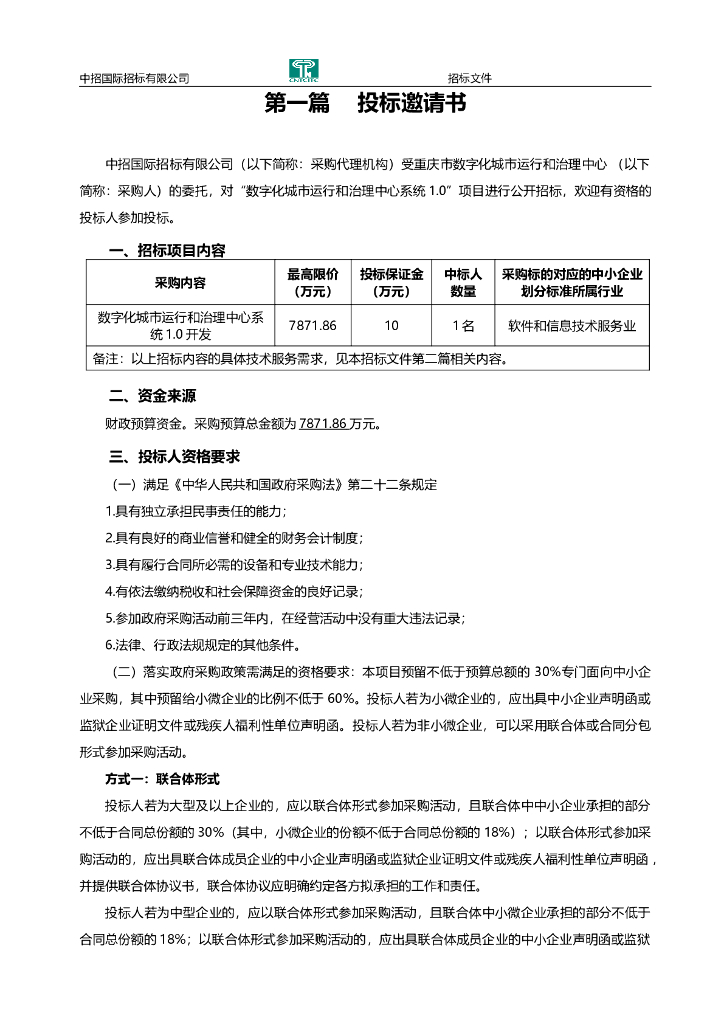 数字化城市运行和治理中心系统1.0招标文件.doc