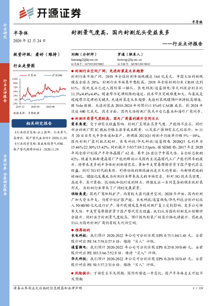 开源证券:半导体行业点评报告:封测景气度高,国内封测龙头受益良多.pdf