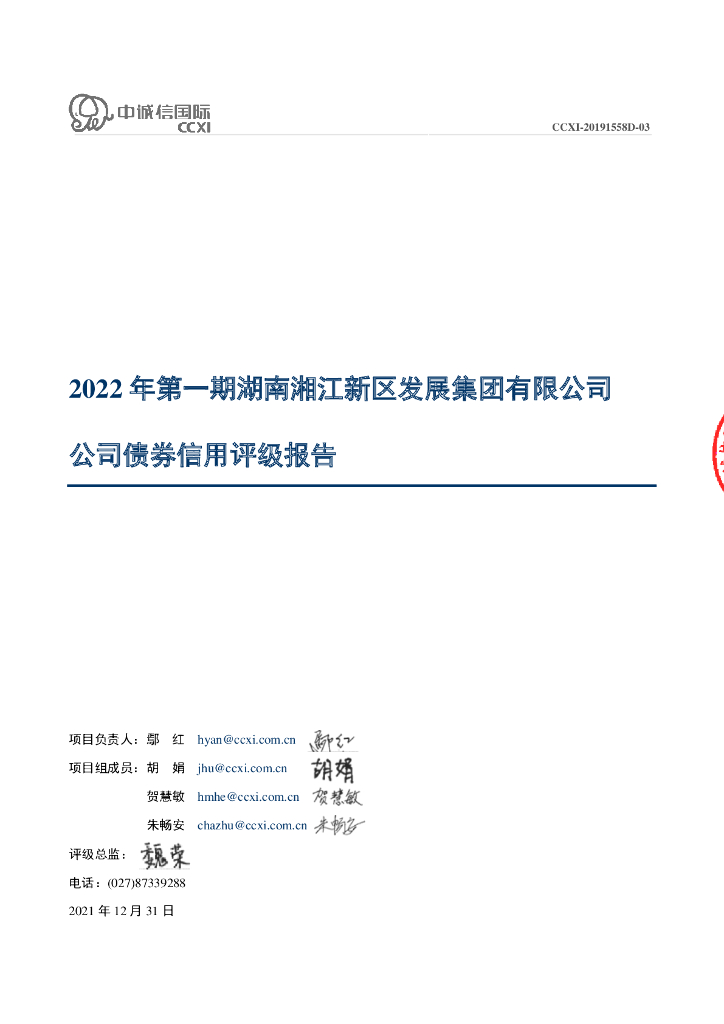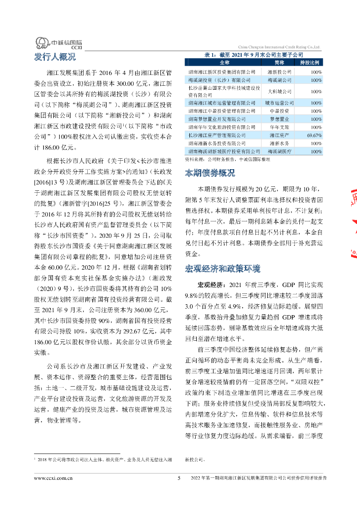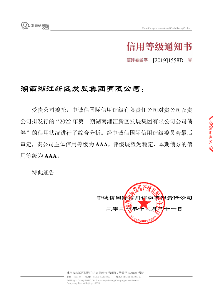 中诚信:2022年第一期湖南湘江新区发展集团有限公司公司债券信用评级报告.pdf