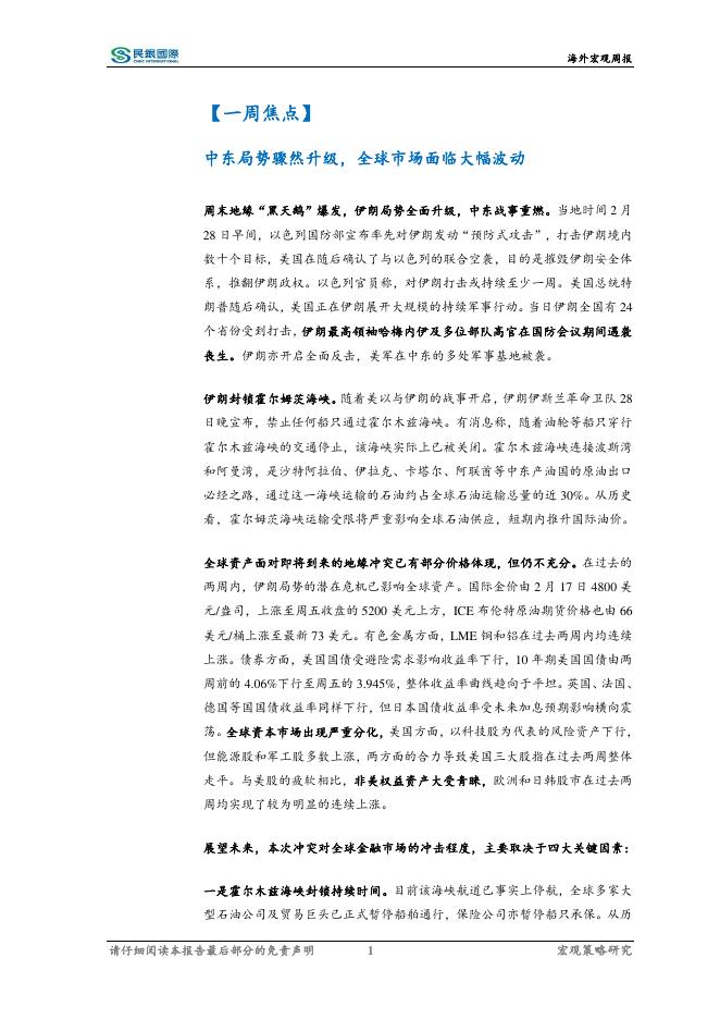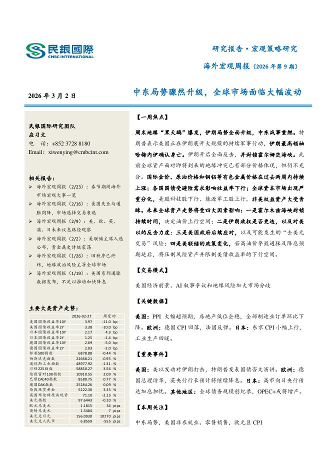 民银证券:海外宏观周报(2026年第9期):中东局势骤然升级,全球市场面临大幅波动-260302.pdf