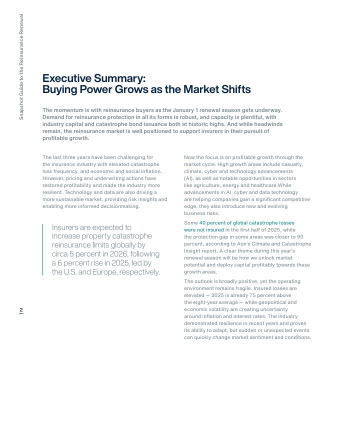 AON怡安:2025年再保险续约快照指南报告-市场转变,购买力增长(英文版).pdf