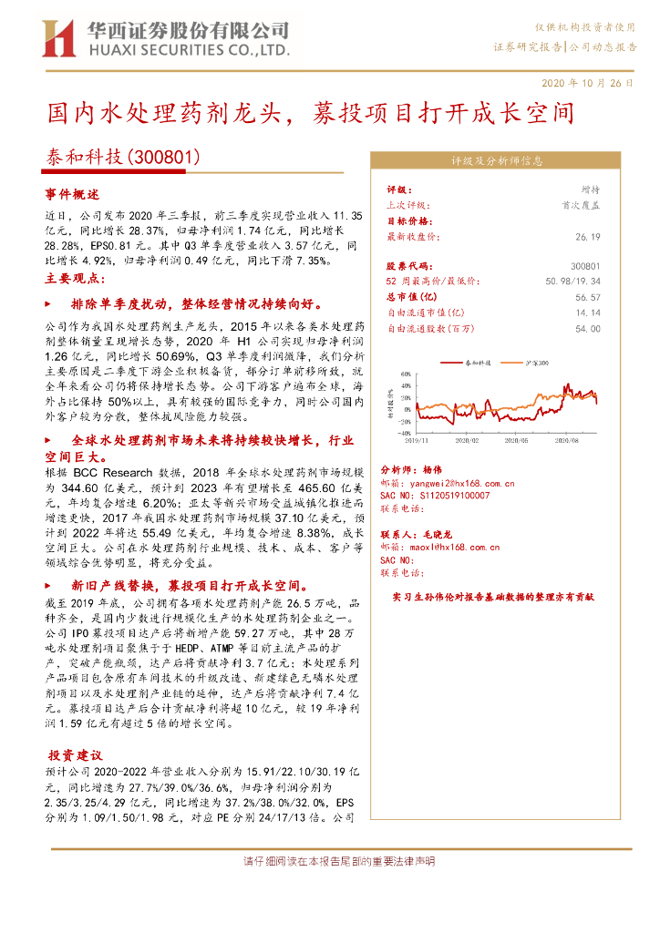 华西证券:泰和科技(300801)-国内水处理药剂龙头,募投项目打开成长空间.pdf