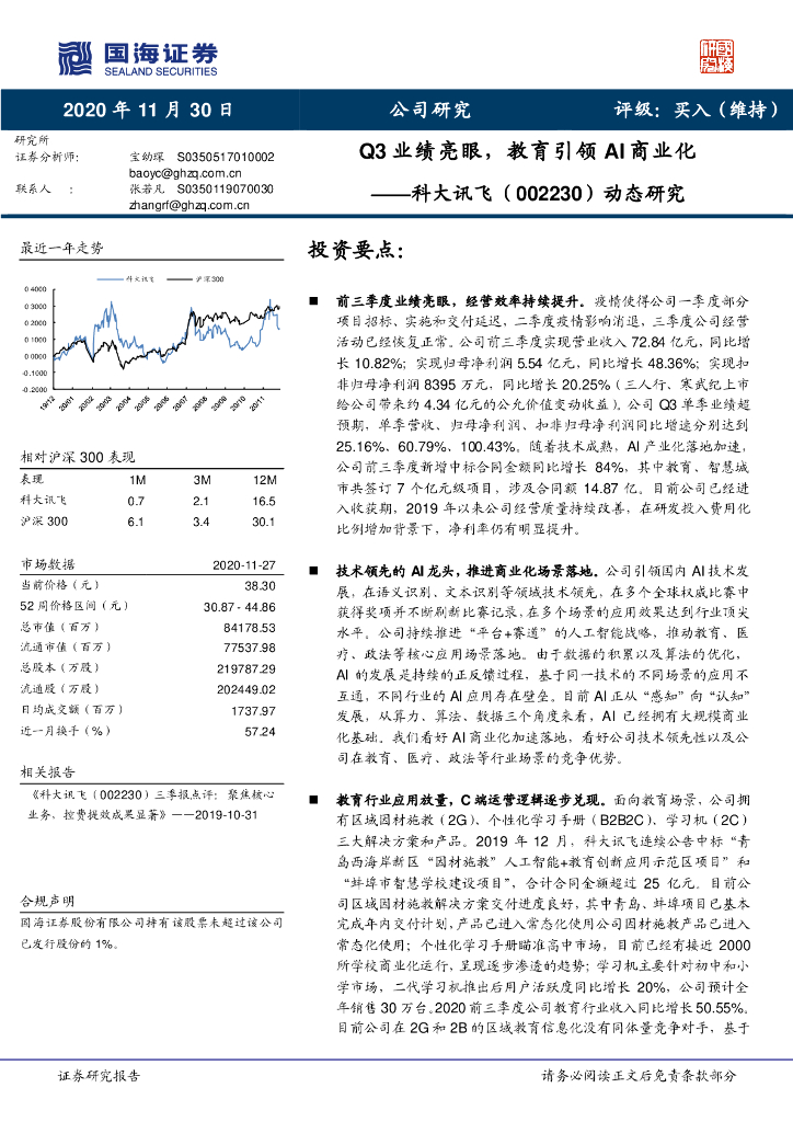 国海证券:科大讯飞(002230)-动态研究:Q3业绩亮眼,教育引领AI商业化.pdf
