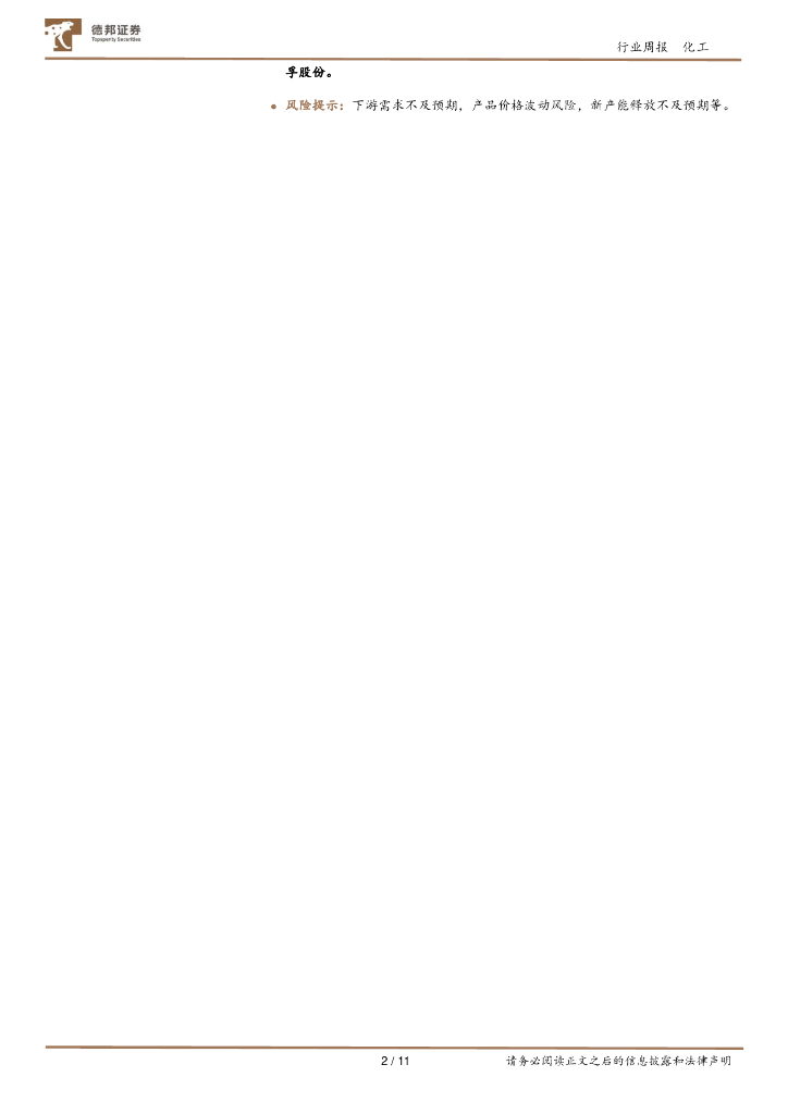 德邦证券:化工新材料行业周报:天赐材料锂电及含氟新材料项目通过环评,泰州高分子材料生产基地项目签约.pdf