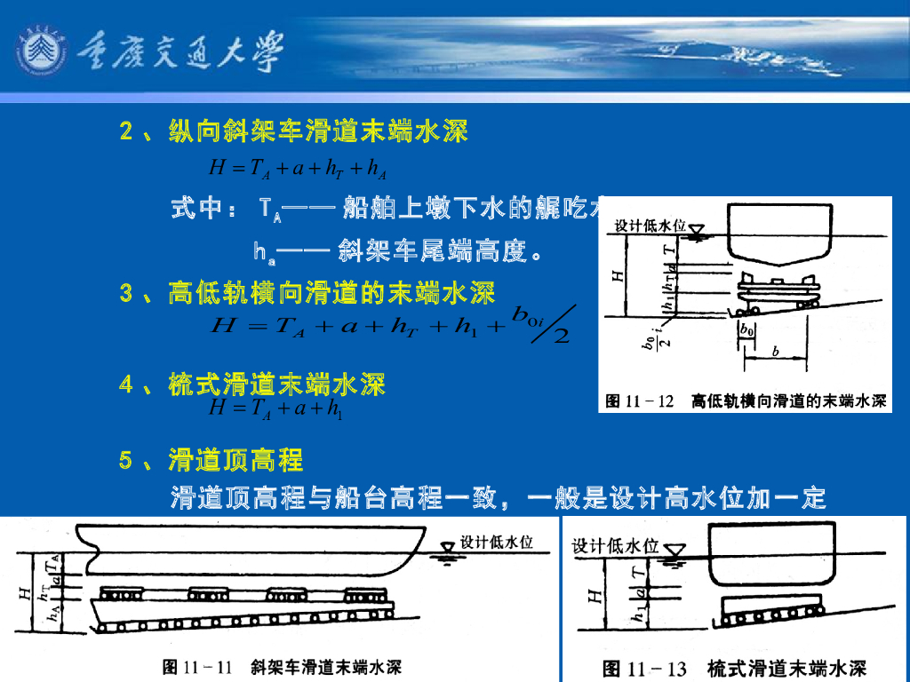 《港口水工建筑物》教学课件-机械化滑道的主要尺度.pdf