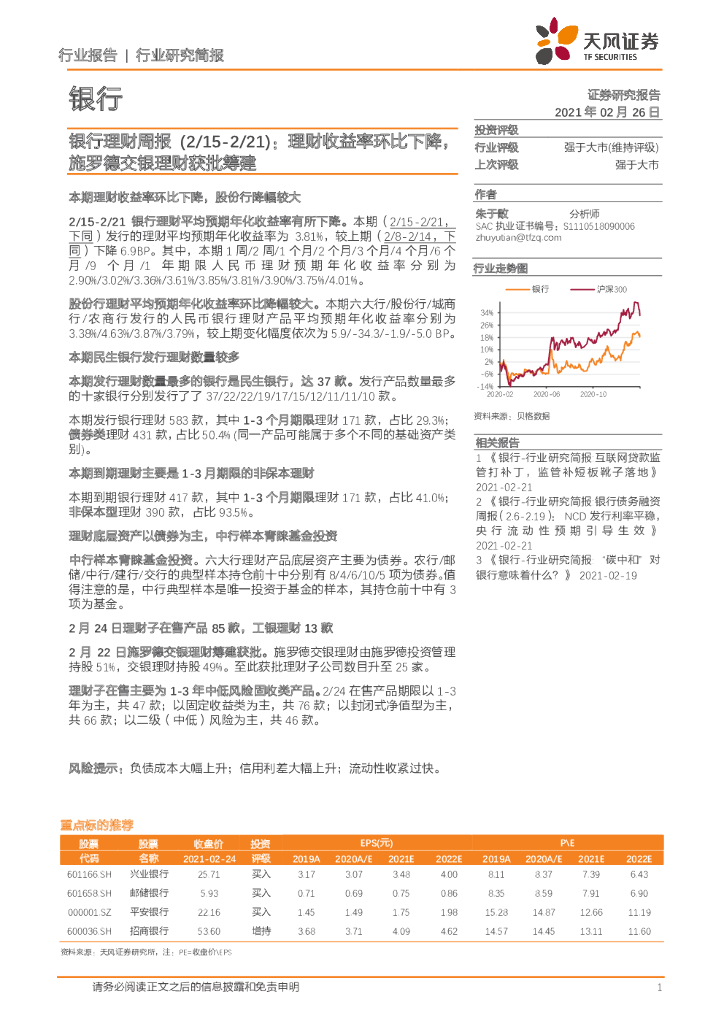 天风证券:银行理财周报:理财收益率环比下降,施罗德交银理财获批筹建.pdf